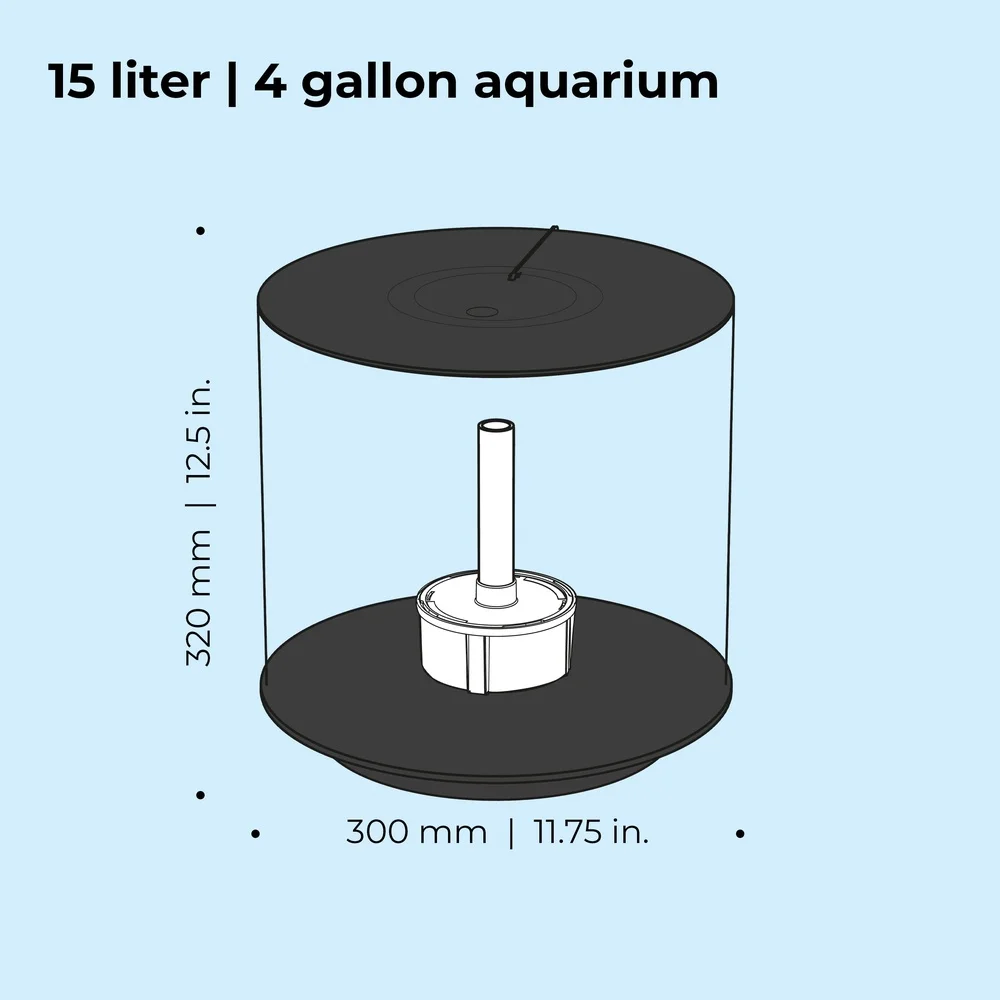This fish tank has a sleek thin black lid and base. The platform base creates a stylish finished look to this unique aquarium. Everything you need to start your new hobby is included: acrylic aquarium, low voltage pump, LED lighting, filtration, and manual.