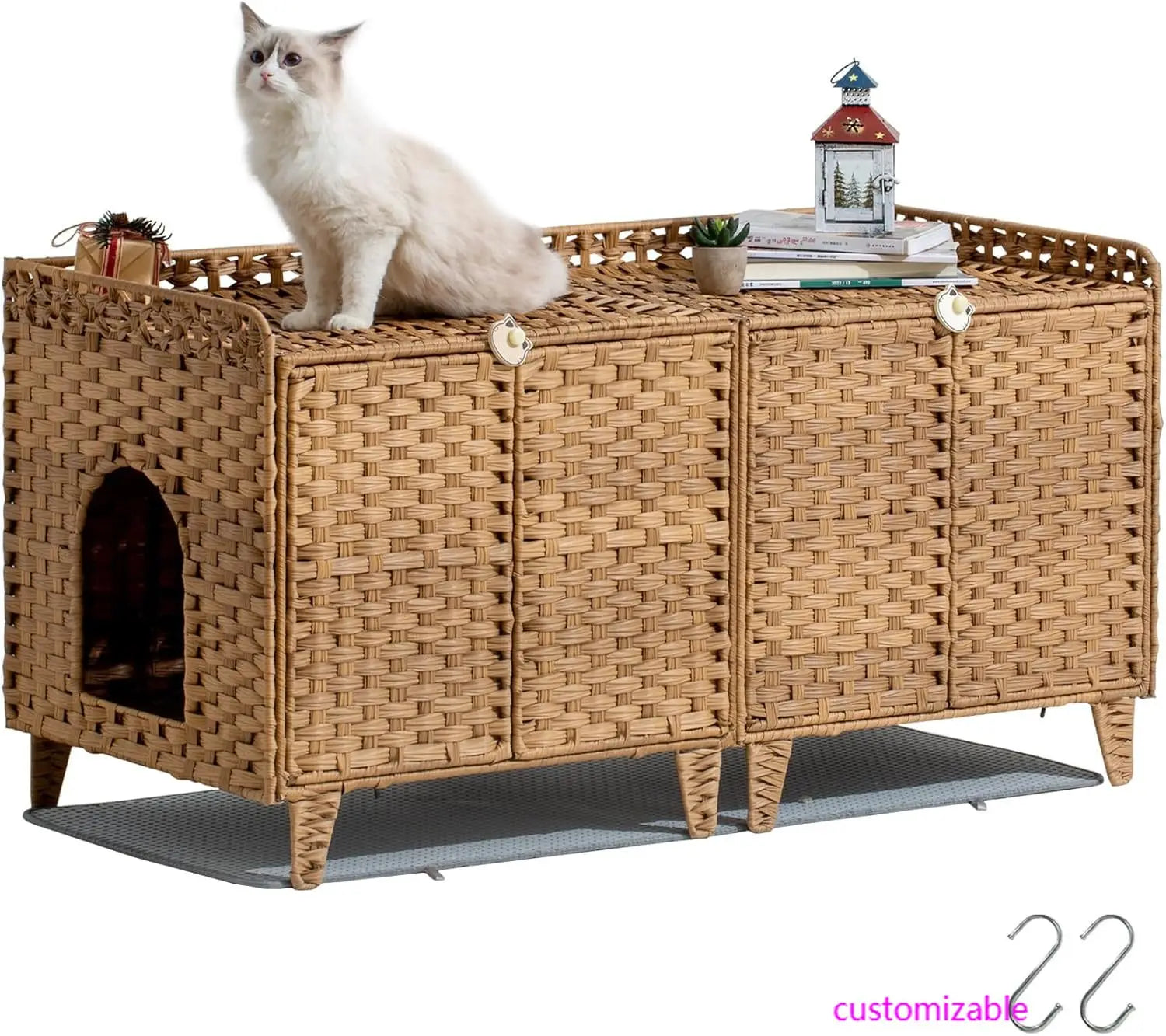 - Sturdy, natural rattan-style enclosure doubles as elegant furniture to blend with your living space and hides the litter area, reducing odor and visual clutter.