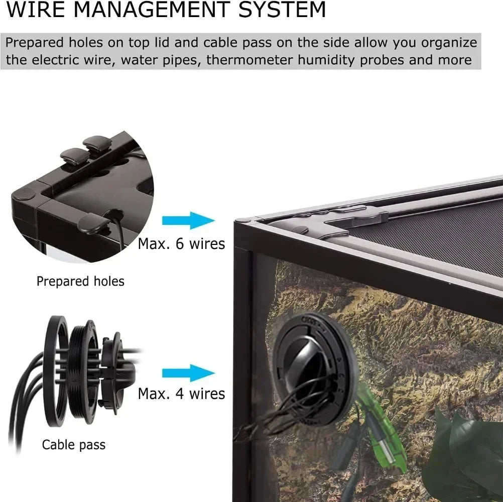 Experience crystal-clear viewing and easy access with the Hign-concerned Front Opening Glass Reptile Tank Terrarium.