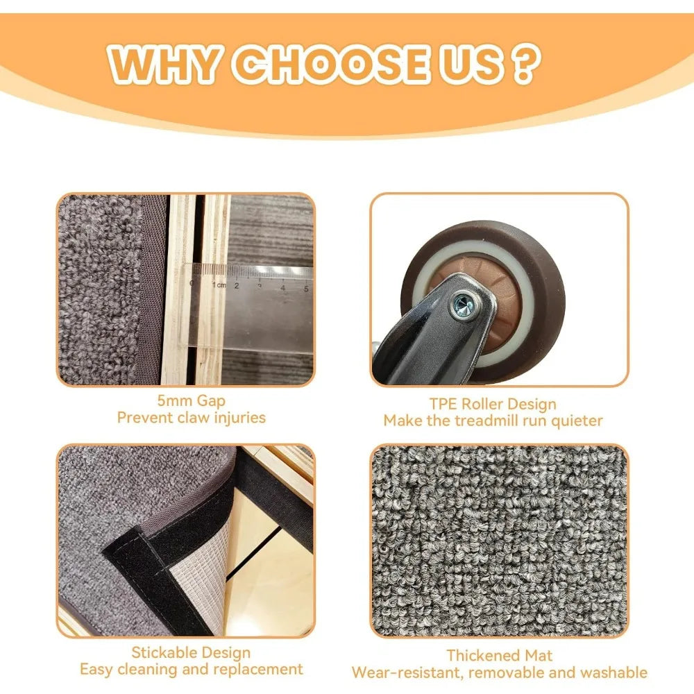 - Your cat will love the carpeted runway's soft, non-slip surface for confident sprints and longer play sessions.
