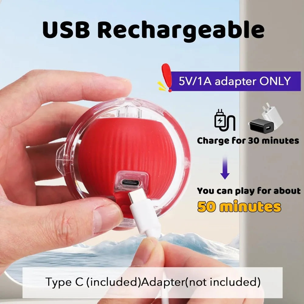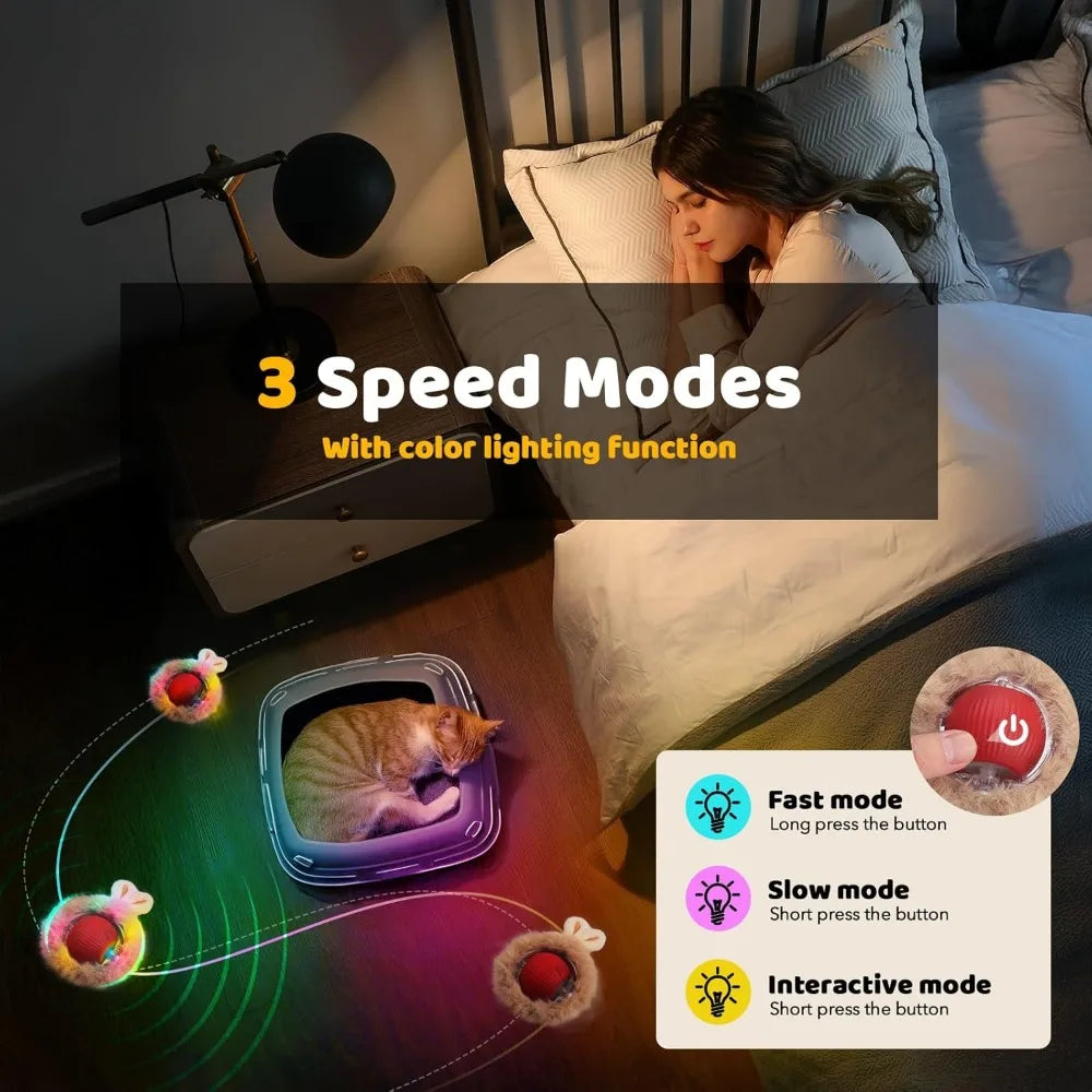 - A motorized ball rolls inside a crinkle sack, delivering unpredictable wiggles and sudden darts that keep your cat guessing and fully engaged for hours.