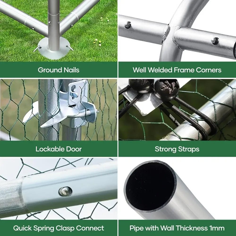 - You gain versatile space with easy installation thanks to improved pole connections, and ample room for 20-30 domestic fowl or other small-to-medium animals (rabbits, ducks, cats, dogs, sheep, birds, land turtles) in outdoor yard use; dimensions: 236 inches long, 118 inches wide, 77 inches high.