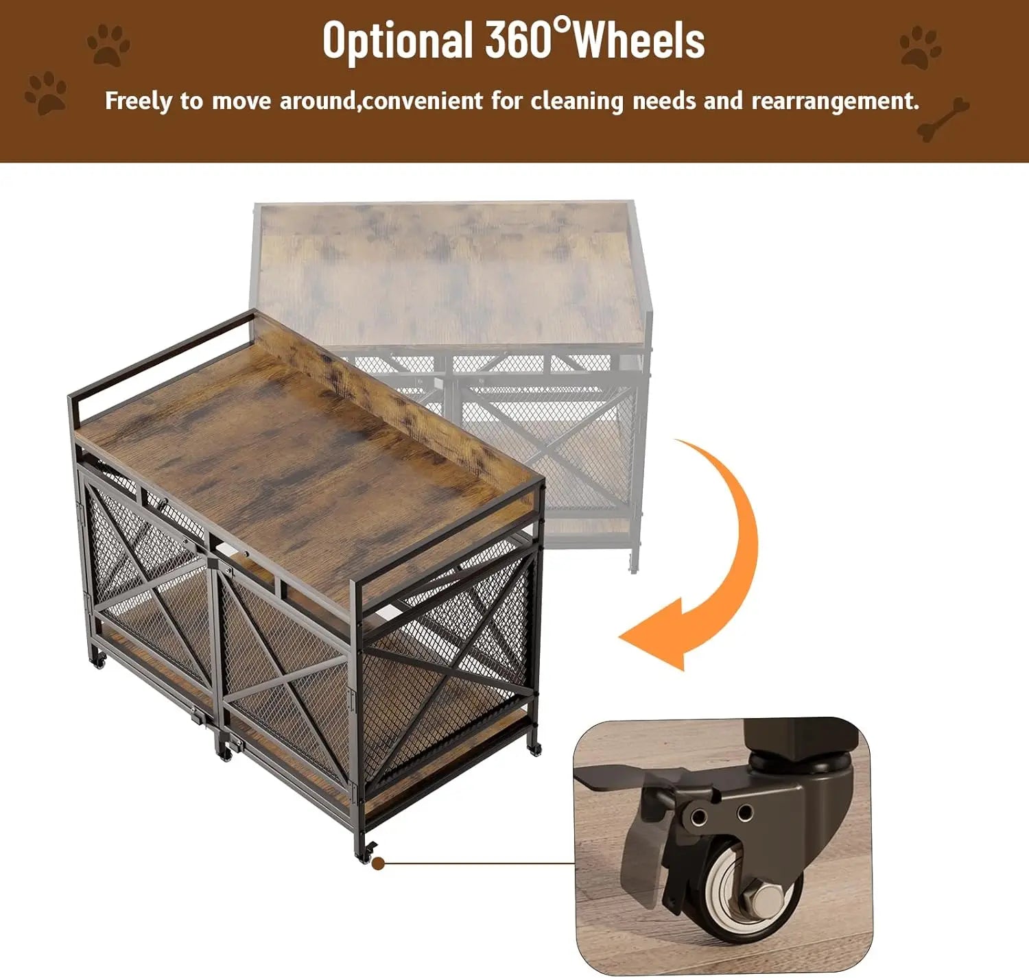 - Casters for easy mobility let you move the crate effortlessly for cleaning, rearranging, or transitioning between rooms.