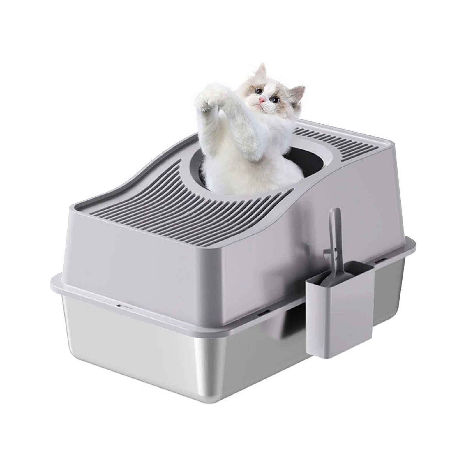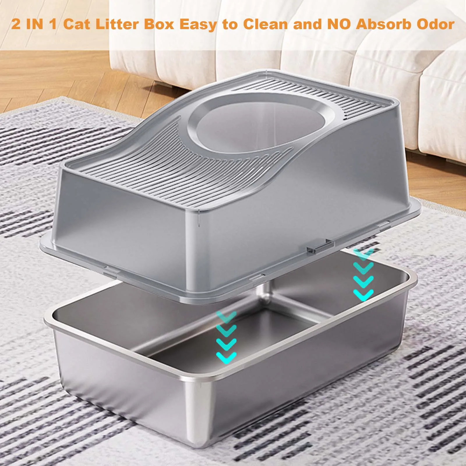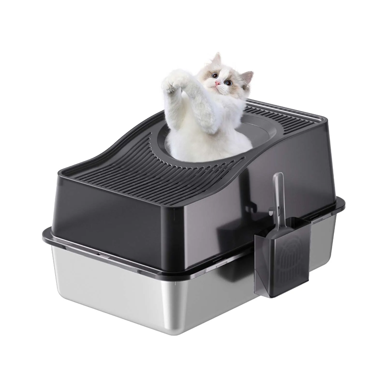 Easy Cleaning with Stainless Steel: Constructed from premium stainless steel, this litter box boasts a non-stick surface that simplifies cleaning, just a quick rinse will do, with no lingering odors.