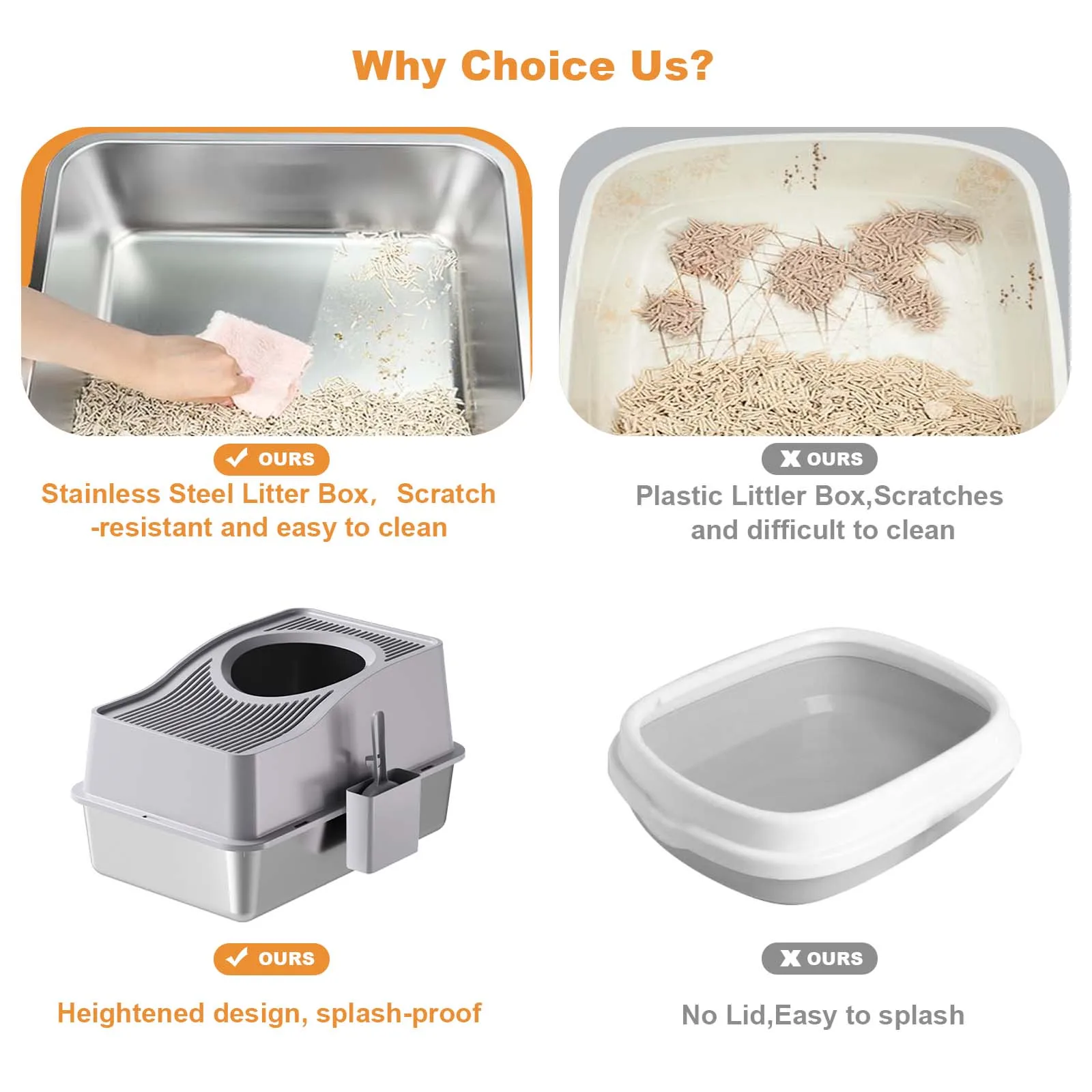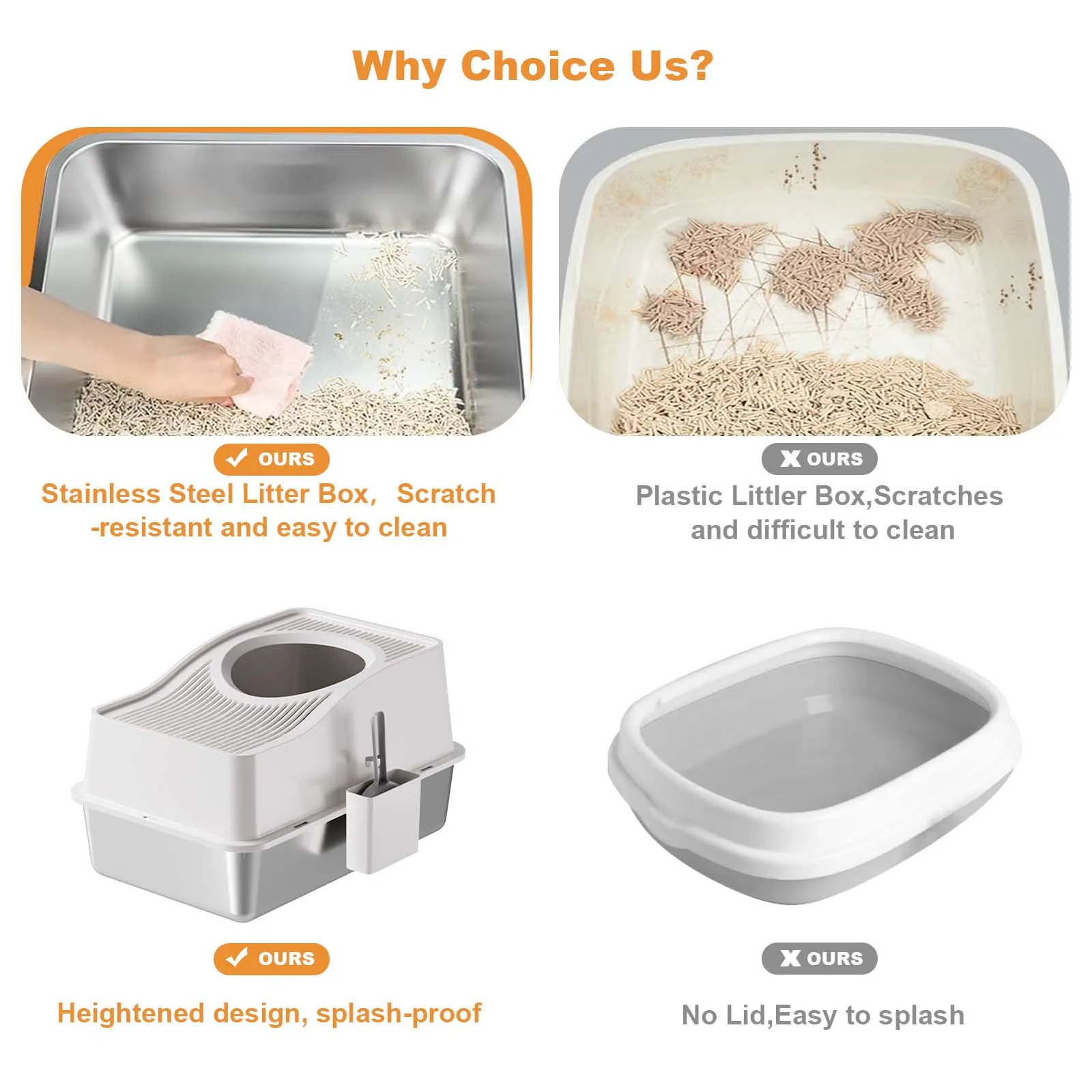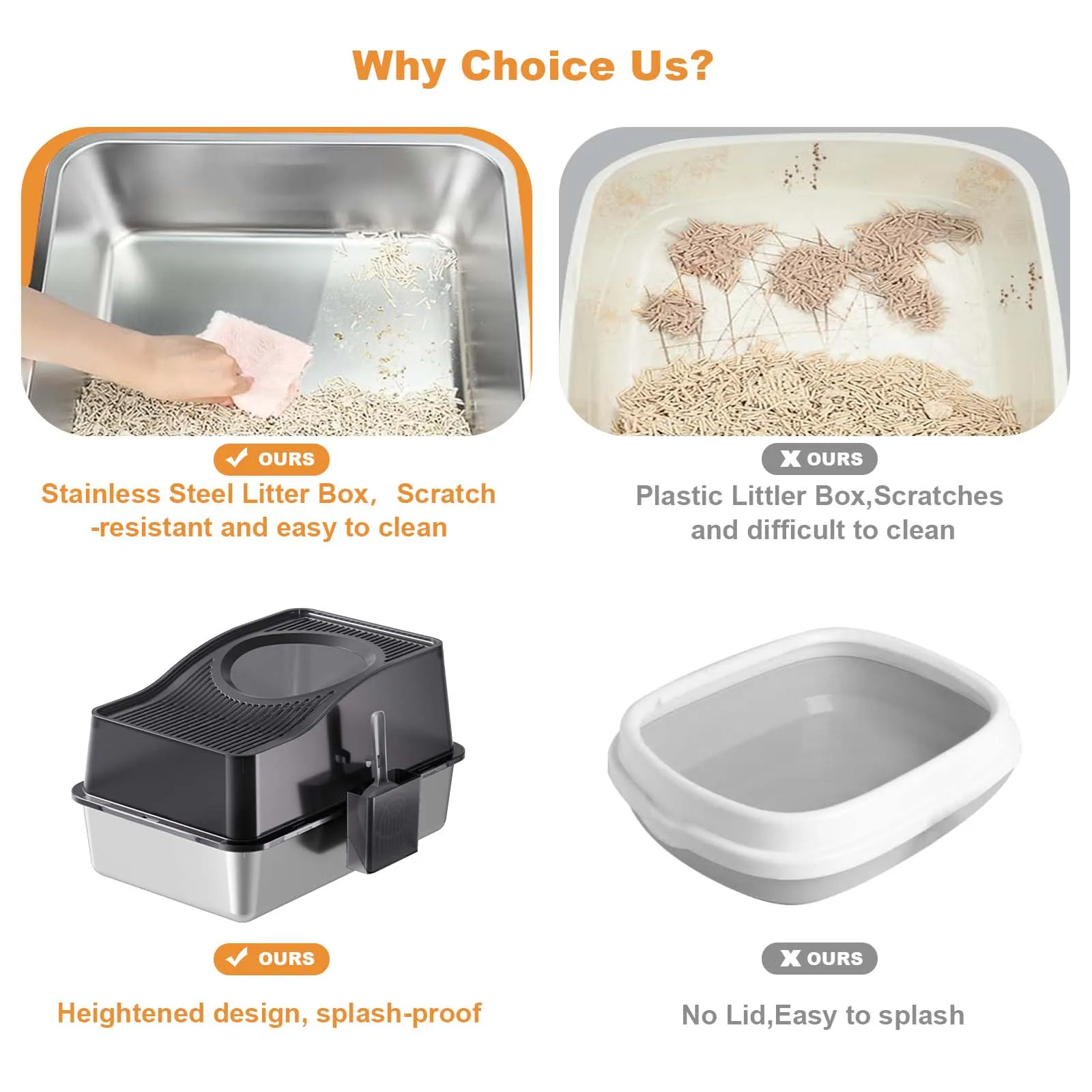 Easy Cleaning with Stainless Steel: Constructed from premium stainless steel, this litter box boasts a non-stick surface that simplifies cleaning, just a quick rinse will do, with no lingering odors.